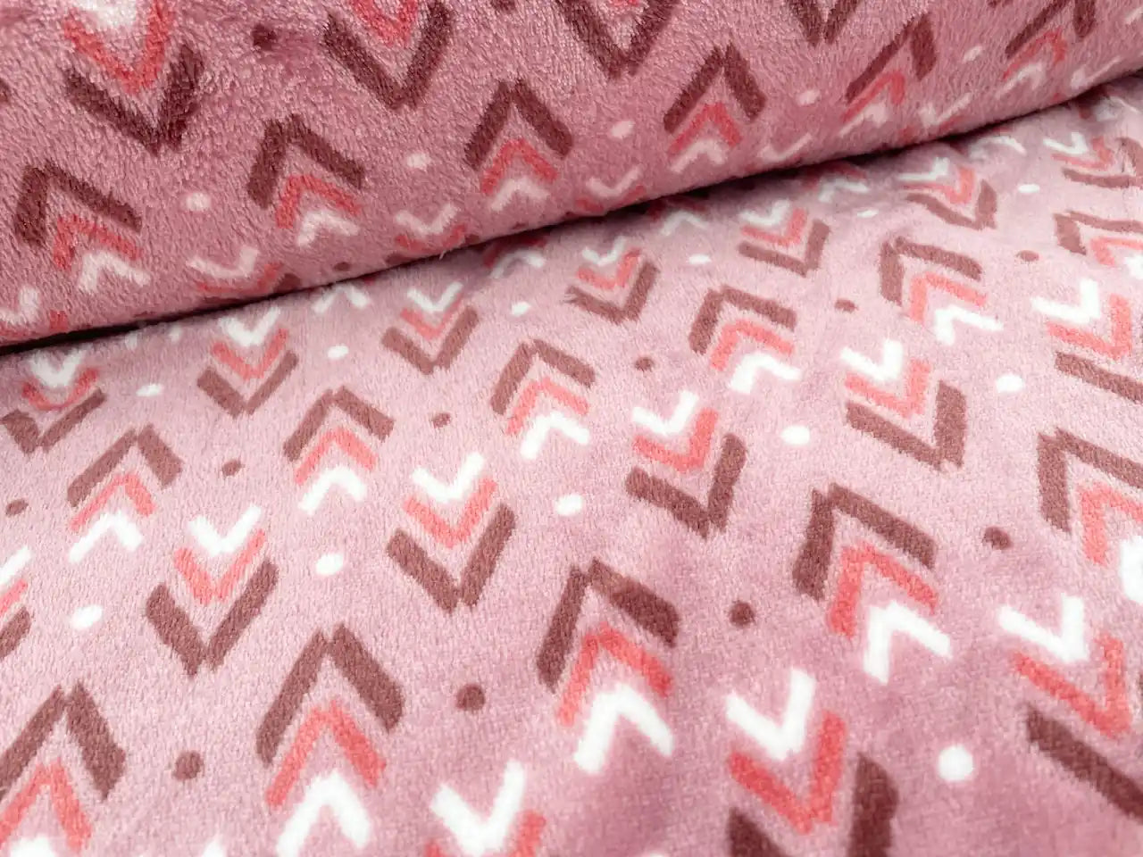 Flanell Fleece "Pfeilmuster" Altrosa