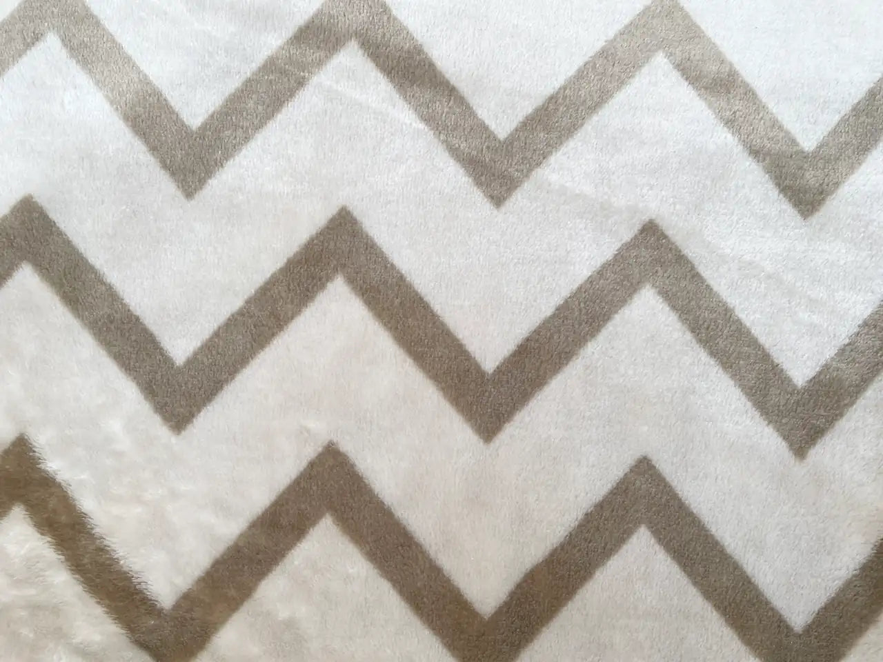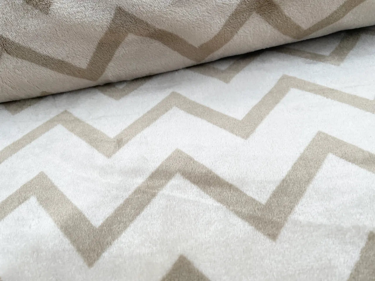 Kuscheliger und wundervoll weicher Flanell Fleece hier mit Zick Zack Muster in Hellbraun auf beigefarbenen Grund.