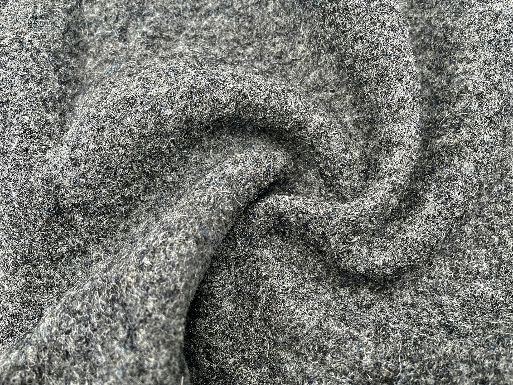 Hochwertiger und robuster Wollwalk in der Farbe Dunkelgrau. Bei dem Stoff handelt es sich um ein Naturprodukt aus 100 % mulesingfreier Wolle.