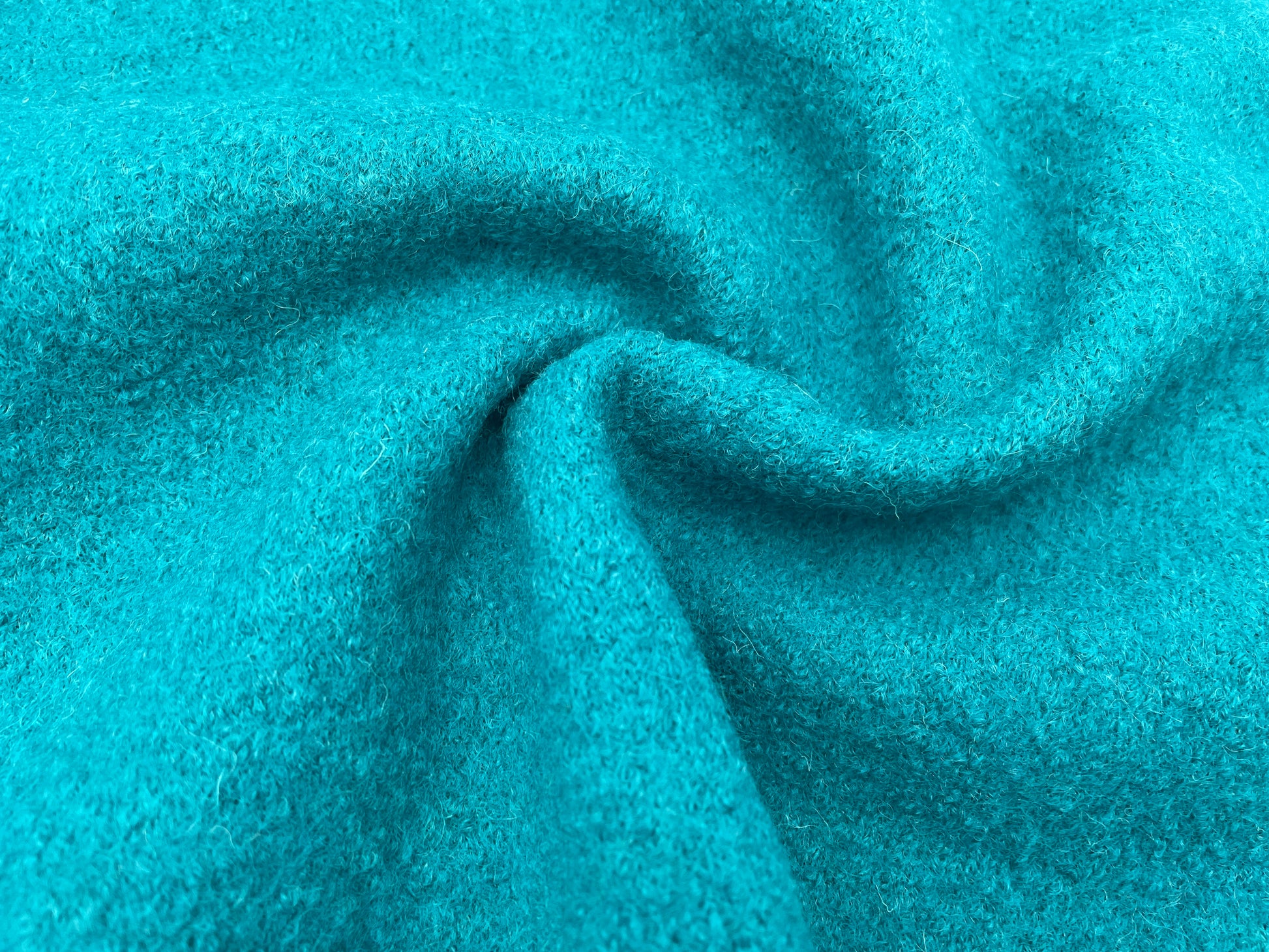 Hochwertiger und robuster Wollwalk in der Farbe Petrol. Bei dem Stoff handelt es sich um ein Naturprodukt aus 100 % mulesingfreier Wolle.