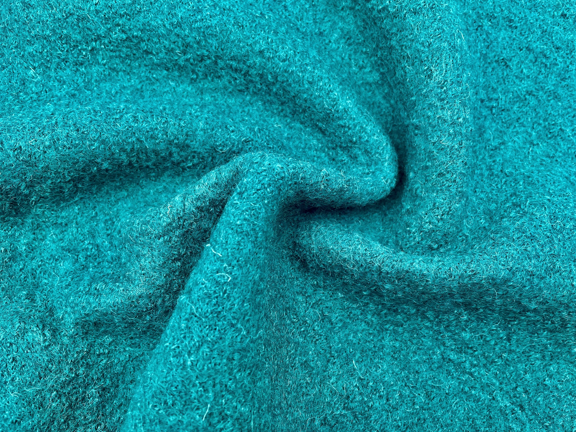 Hochwertiger und robuster Wollwalk in der Farbe Tannengrün. Bei dem Stoff handelt es sich um ein Naturprodukt aus 100 % mulesingfreier Wolle.